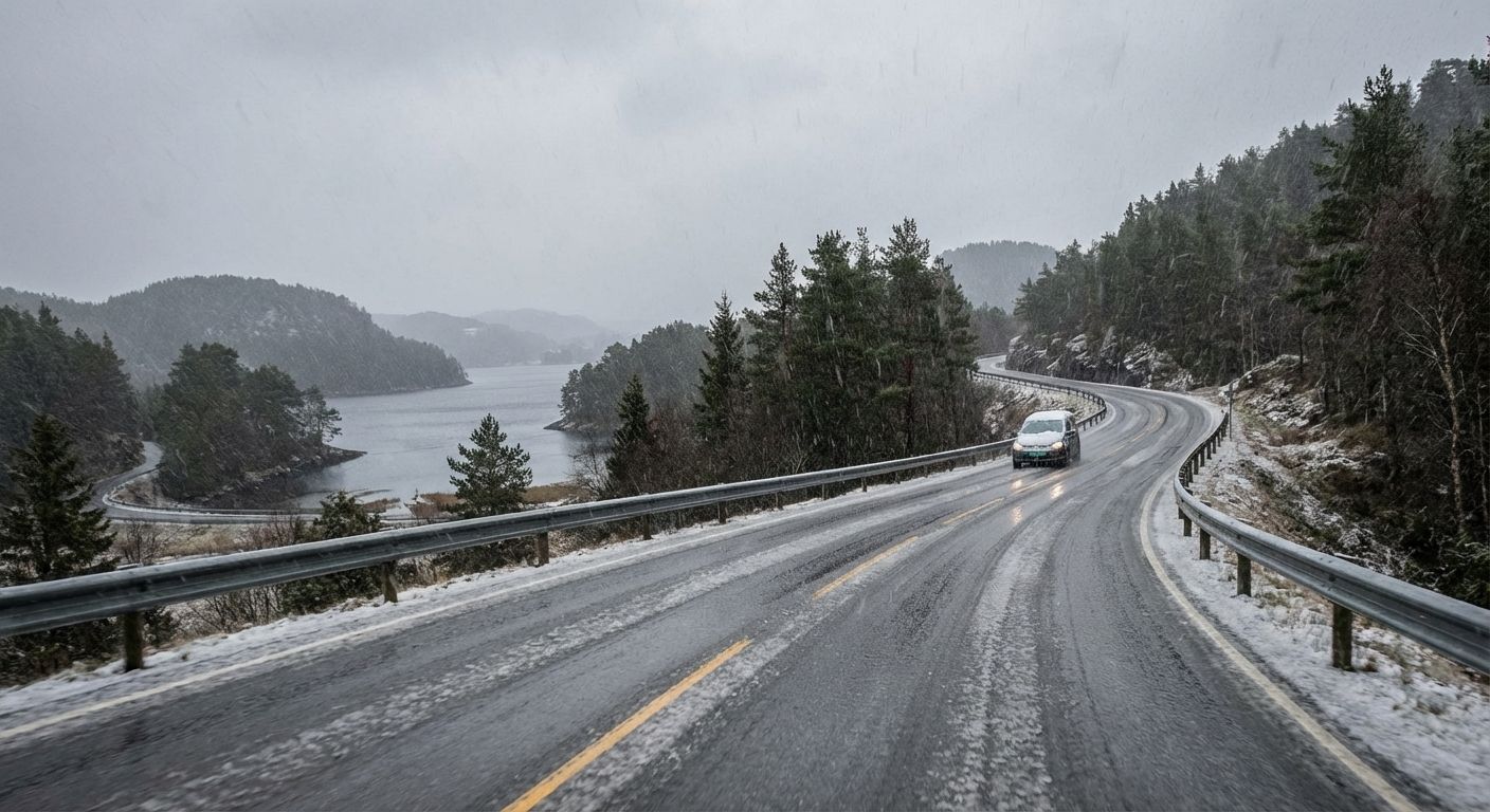 Meteorologisk institutt anbefaler bilistene å beregne ekstra tid til transport og bruke riktige dekk. Våt is i veibanen kan være vanskelig å oppdage, og det er viktig å tilpasse farten til forholdene.