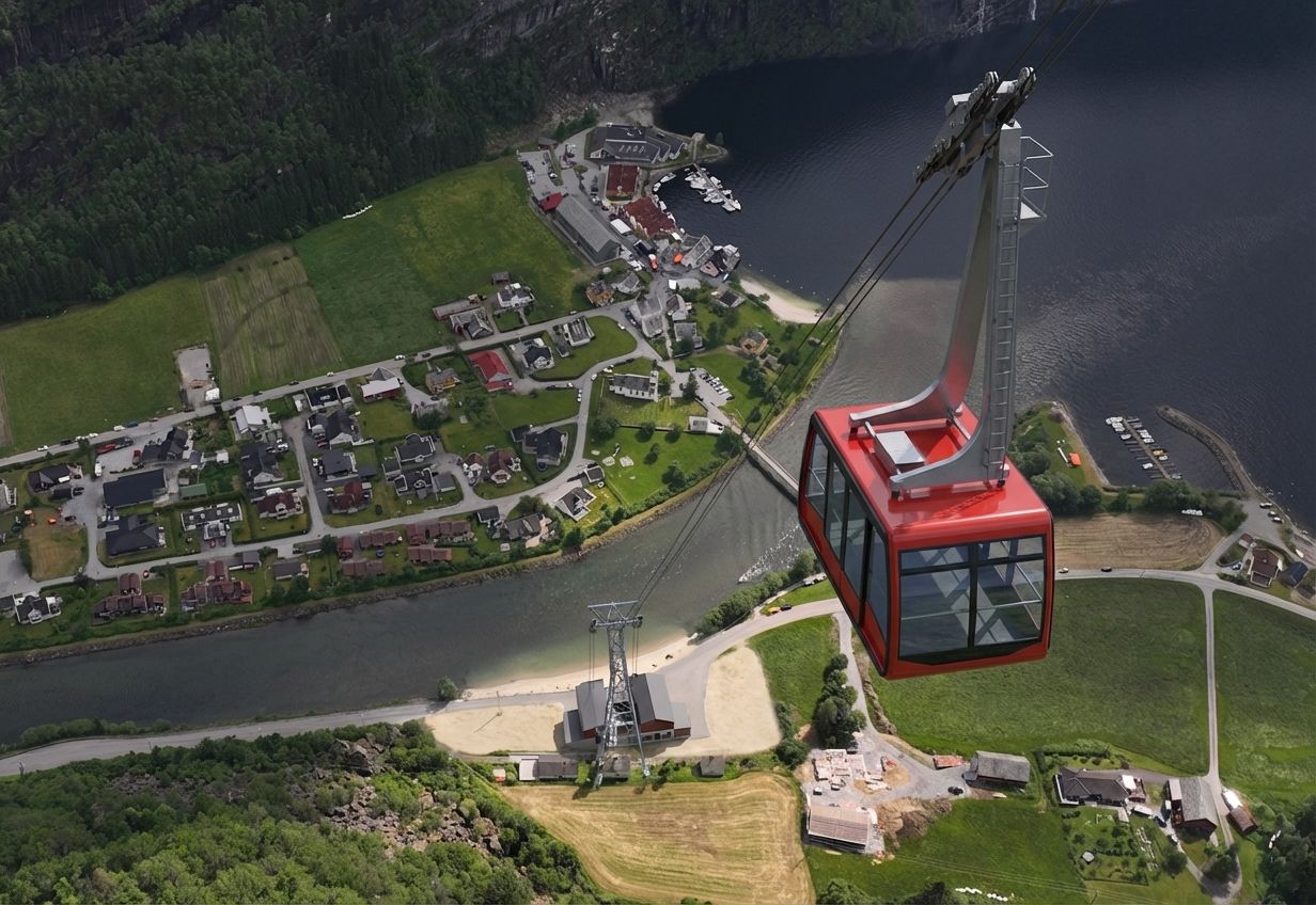 Det ordentlige viste seg å være en gondolbane fra kaien i sentrum og opp til vatnet, 387 meter over havet. Kommunestyret vedtok prosjektet med 7 mot 2 stemmer på et ekstraordinært møte, kvelden 28. mars 2026.